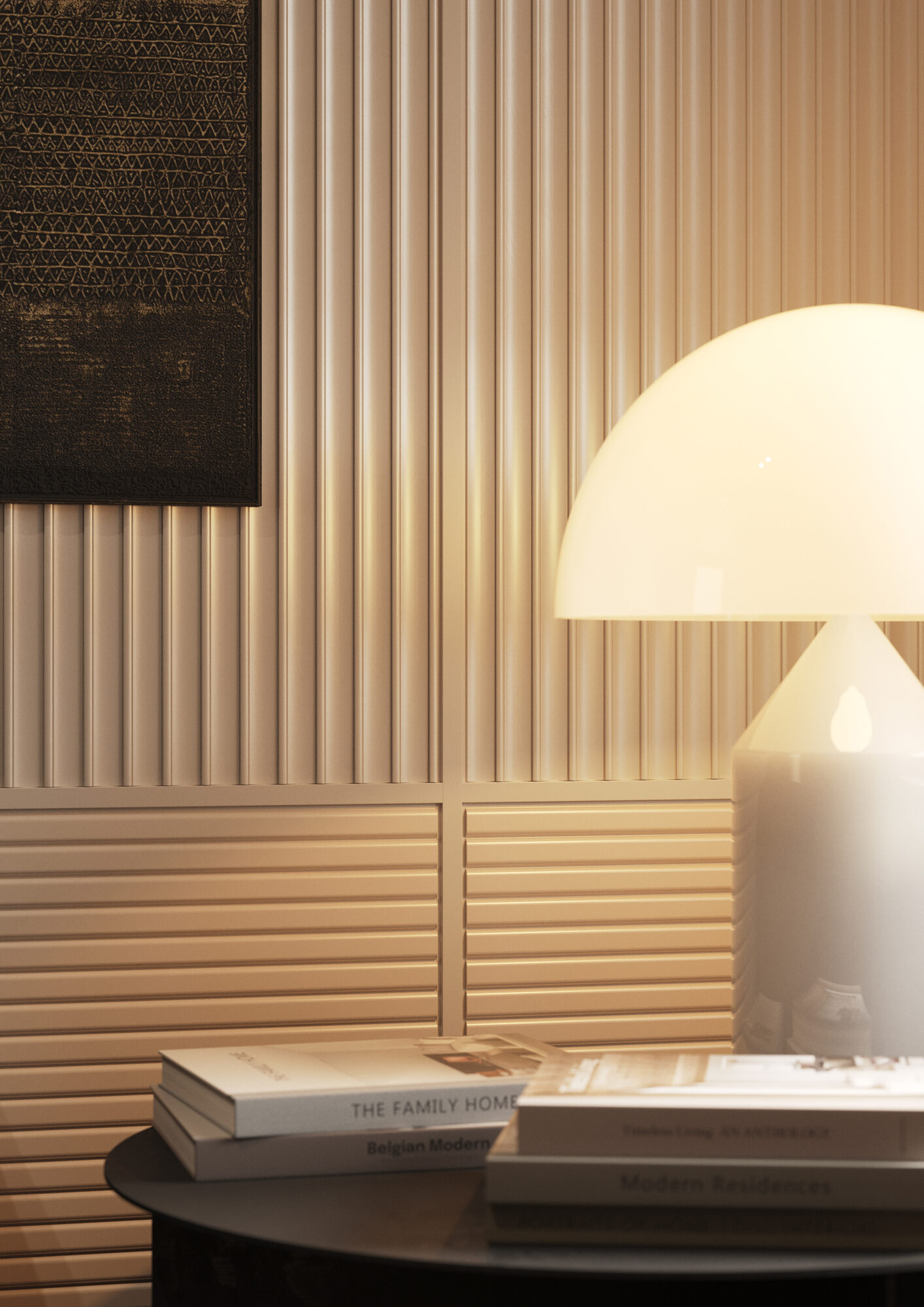 Stworzony przez projektanta Bertranda Lejoly'ego panel ścienny DORIQUE to reinterpretacja klasycznego wzoru, który idealnie pasuje do współczesnych wnętrz. Paski światła i cienia na przemian wzdłuż pionowych linii tworzą grę kontrastów i wyrafinowaną geometrię. Ten panel 3D może być używany w połączeniu z profilami wykończeniowymi FL11 i WL10, a także panelami ściennymi CANELÉ S i L, aby stworzyć niepowtarzalną kompozycję.