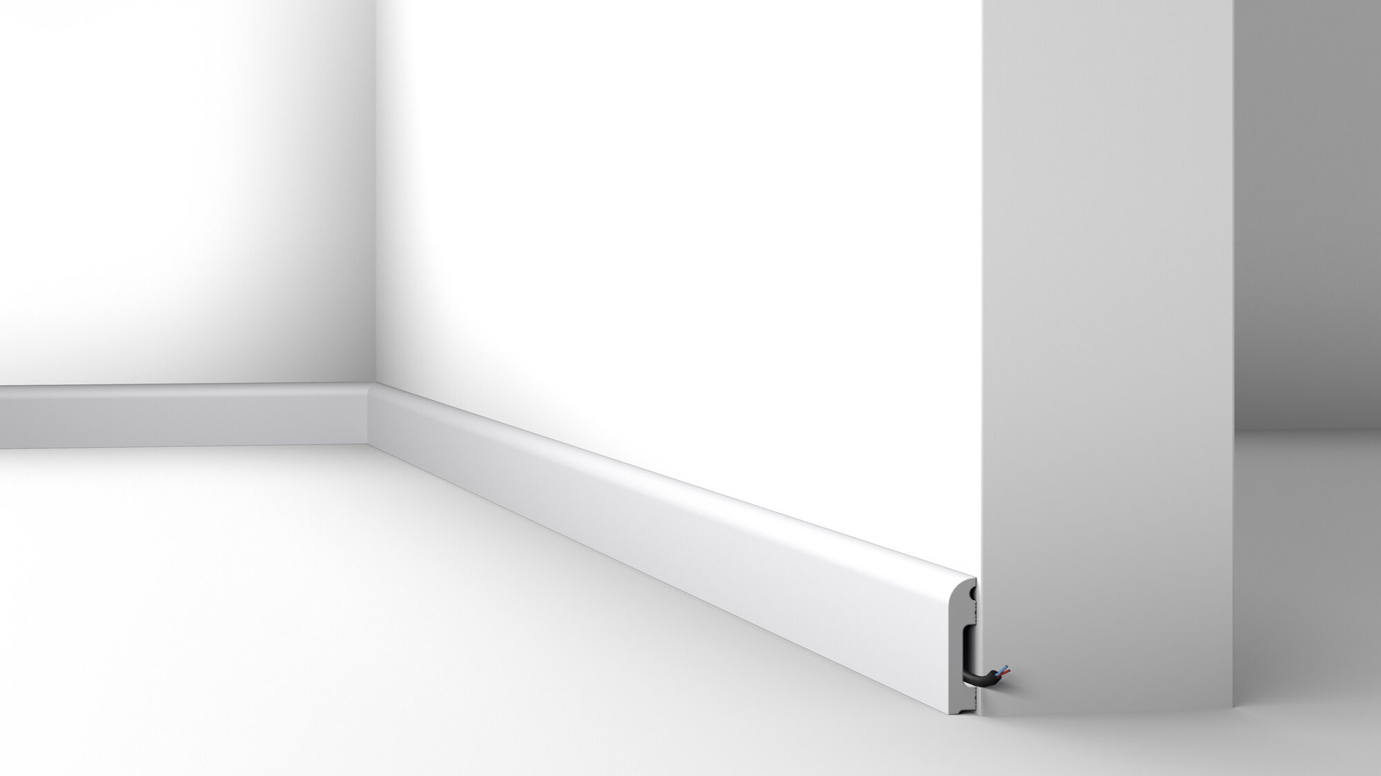 Wysokiej jakości nowoczesna, minimalistyczna listwa przypodłogowa pozwalająca w szybki sposób efektownie wykończyć wnętrze na styku ściany i podłogi maskujac nierówności i dylatację. Ten model jest przeznaczony również jako listwa kończąca, przypodłogowa do paneli 3D: Allegretto, Bohemia czy Calando.