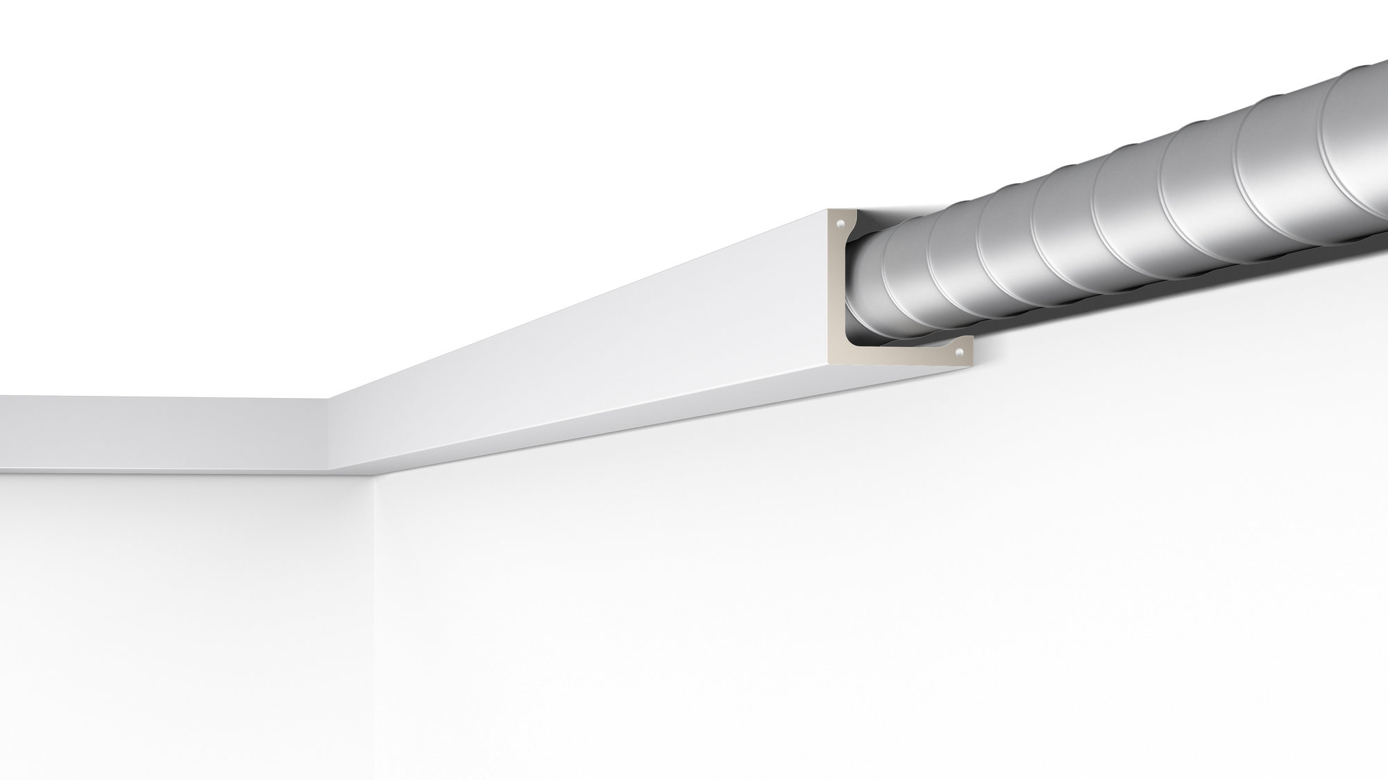 Listwa o charakterze użytkowym, idealnie sprawdza się jako maskownica rur, obramowanie nierównych wnęk okiennych lub profil służący do montażu oświetlenia pośredniego.