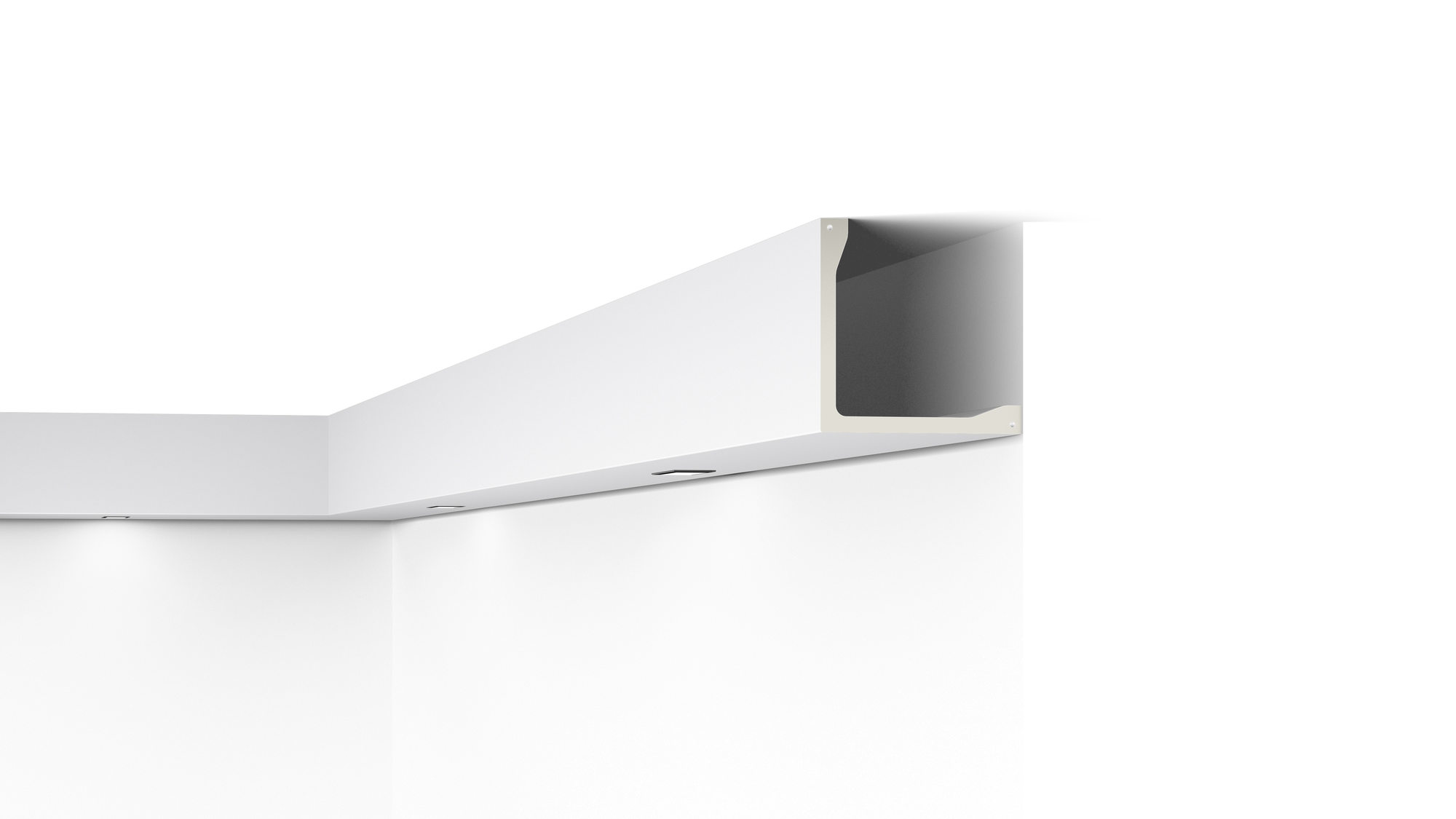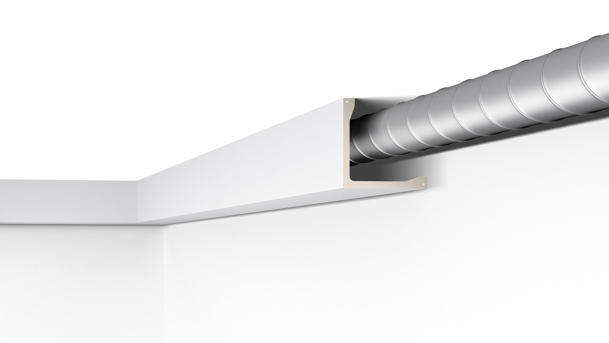 Listwa o charakterze użytkowym, idealnie sprawdza się jako maskownica rur, obramowanie nierównych wnęk okiennych lub profil służący do montażu oświetlenia pośredniego.
