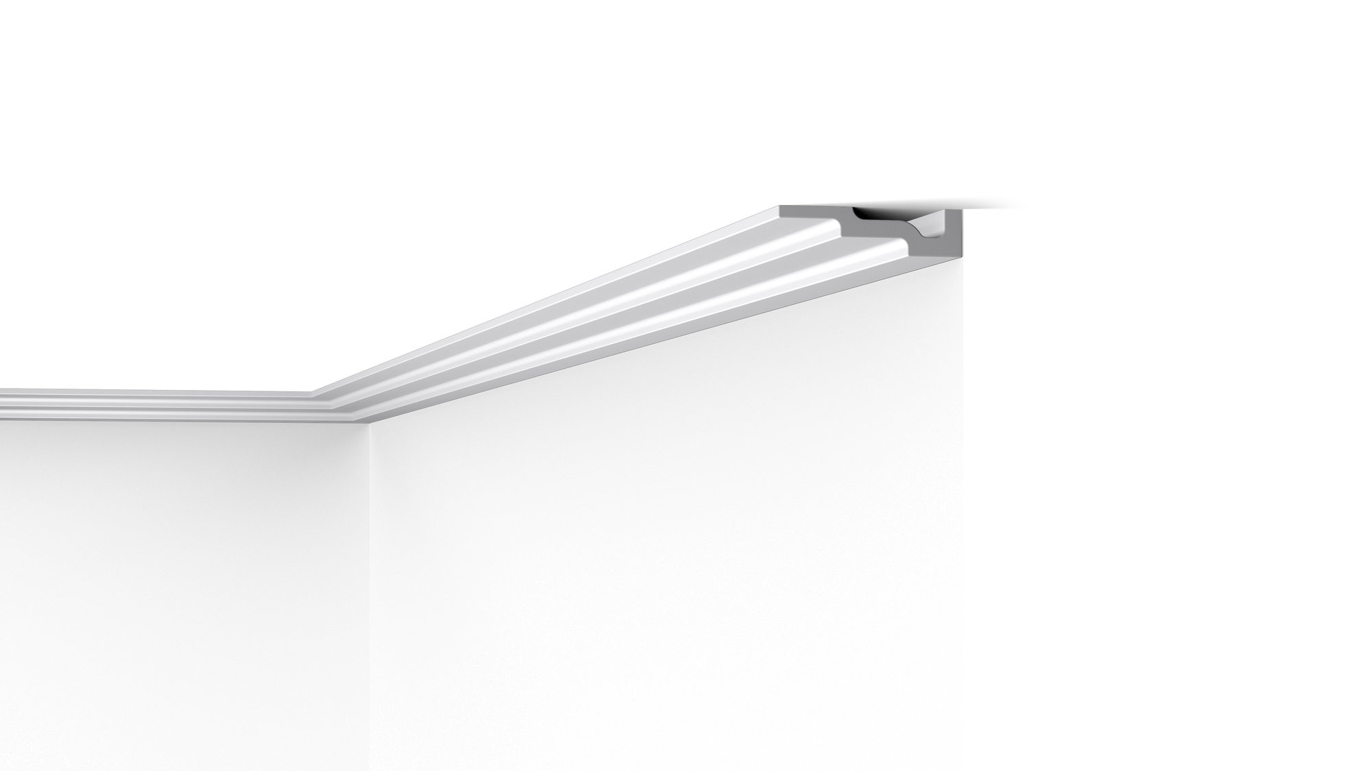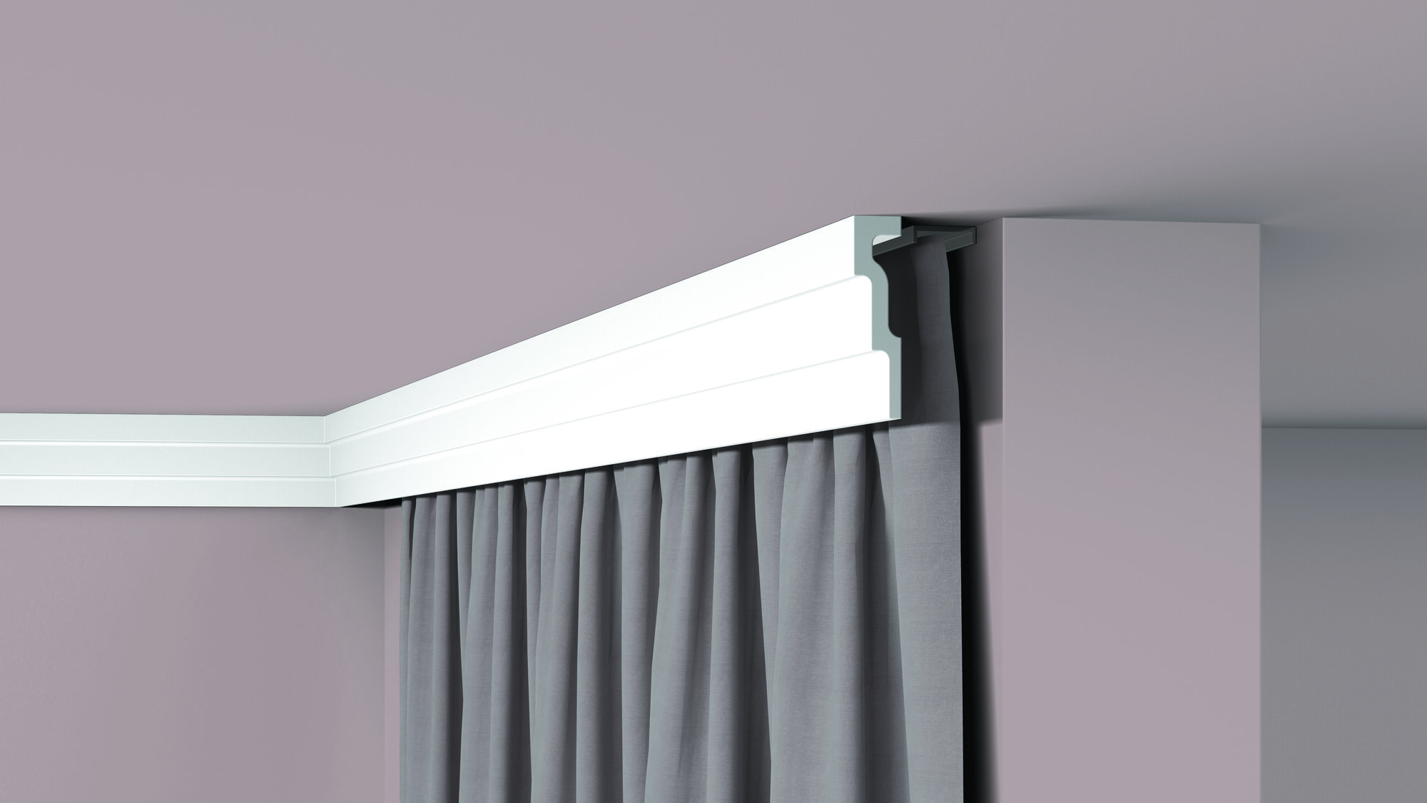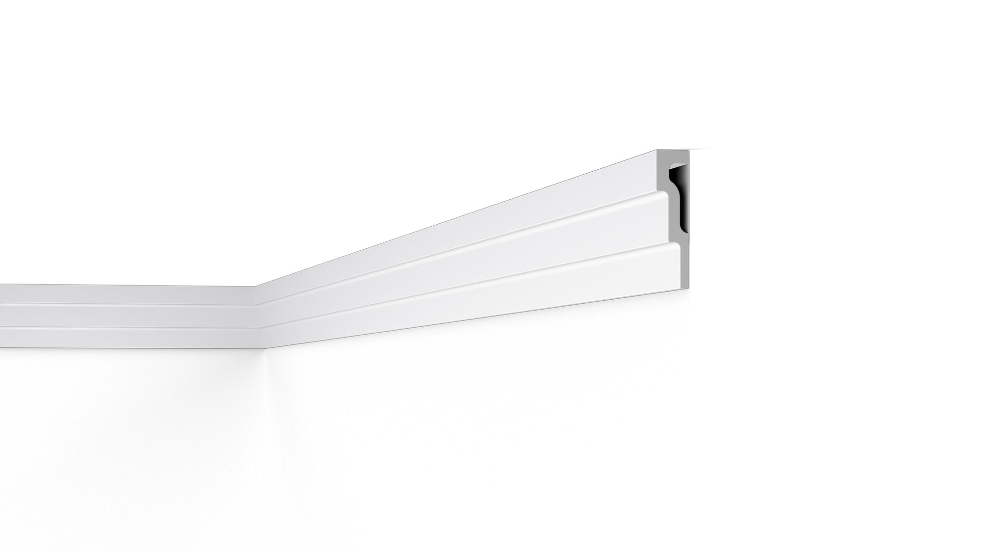 Miękki, nowoczesny gzyms o idealnie gładkiej powierzchni pozwoli niewielkim nakładem środków dodać charakteru każdemu wnętrzu. Listwa pozwoli ukryć drobne niedoskonałości na styku ściany i sufitu. Profil może być równiez stosowany jako maskownica szyny karniszowej.