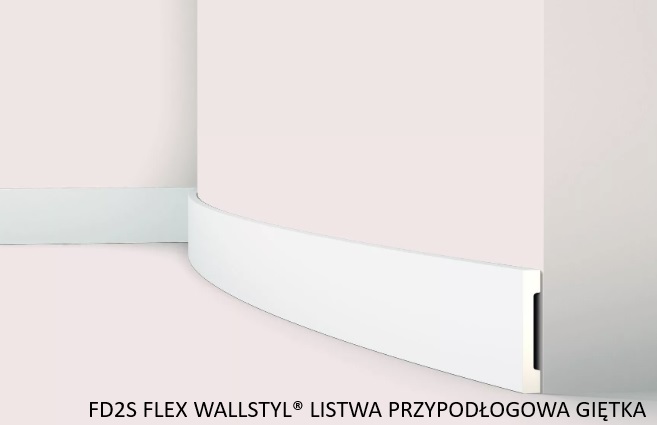W poniższej aranżacji zastosowana została listwa przypodłogowa giętka FD2S FLEX WALLSTYL oraz kilka listew ściennych giętkich WD2 FLEX WALLSTYL.