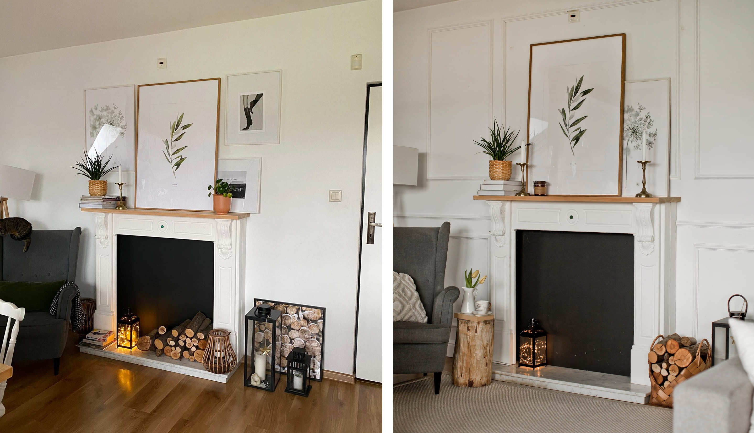 Kasia, która jest autorką poniższej metamorfozy, zapragnęła by przestrzeń nad kominkiem była bardziej spokojna i jasna, ale jednocześnie by pozostała zaakcentowana i ciekawa. Do wykonania metamorfozy wybrała listwy ścienne T40, które przykleiła pionowo na "drewnianej" ścianie. Tak powstała jasna i elegancka strefa, która idealnie komponuje się z pozostałym wyposażeniem wnętrza. Jeden zmieniony element a wnętrze zyskało nową świeżość i energię.