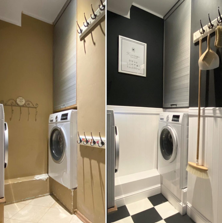 Wykonanie tej metamorfozy zajęło Beacie z "Pani to potrafi" dwa popołudnia. Jedno popołudnie upłynęło pod kątem porządkowania i malowania, a kolejne na docinaniu i przyklejaniu listew sztukateryjnych. Jestem oczarowaną tą zmianą, ponieważ udowadnia jak w bardzo prosty sposób - dobierając odpowiednie listwy i kolory, można całkowicie odmienić charakter wnętrza. W tym przypadku zostały zastosowane listwy przypodłogowe, jedna listwa ścienna dzieląca ścianę na pół, oraz panele ścienne zamontowane na dolnej części ściany. Wykonanie takiej lamperii z paneli ściennych to świetny sposób na ochronę ściany w miejscach, w których narażona jest na obicia czy odkształcenia.