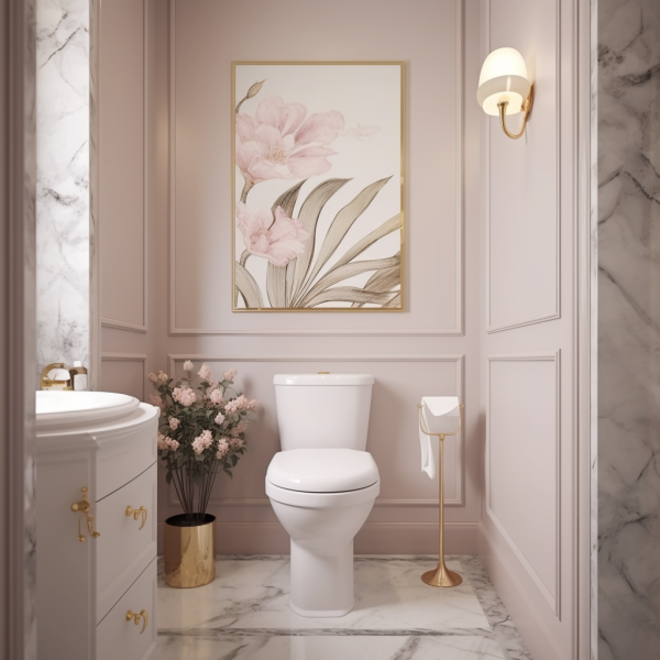 A tu łazienka w stylu glamour i proste listwy, które dodają uroku i klasy temu pomieszczeniu.