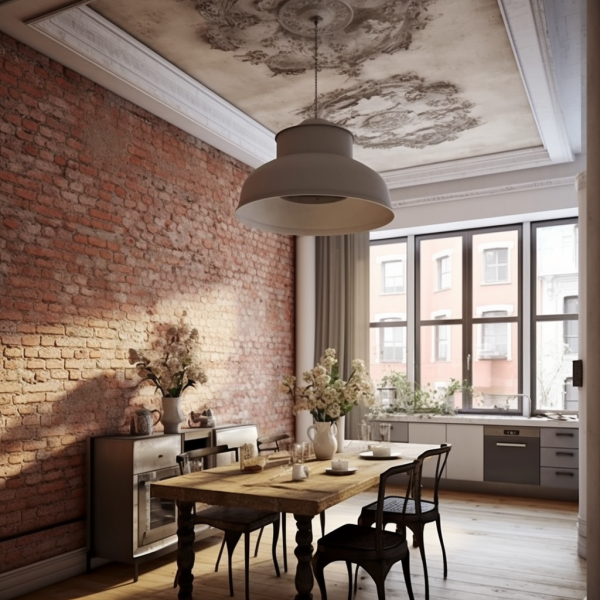 Jedną z najważniejszych cech stylu loft jest surowość widoczna w odsłoniętych ceglanych ścianach, betonowych podłogach i widocznych instalacjach. Sztukateria w takim wnętrzu może pełnić rolę interesującego kontrastu, dodając delikatności i elegancji lub subtelnie dopełniać całość aranżacji.