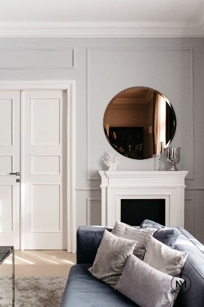 Poniżej inspiracja na zastosowanie listew na całej powierzchni ścian - również wokół futryny drzwi. Dodatkowo fragmenty listew pomalowane zostały na kolor złoty, nadając aranżacji elegancji i szyku.